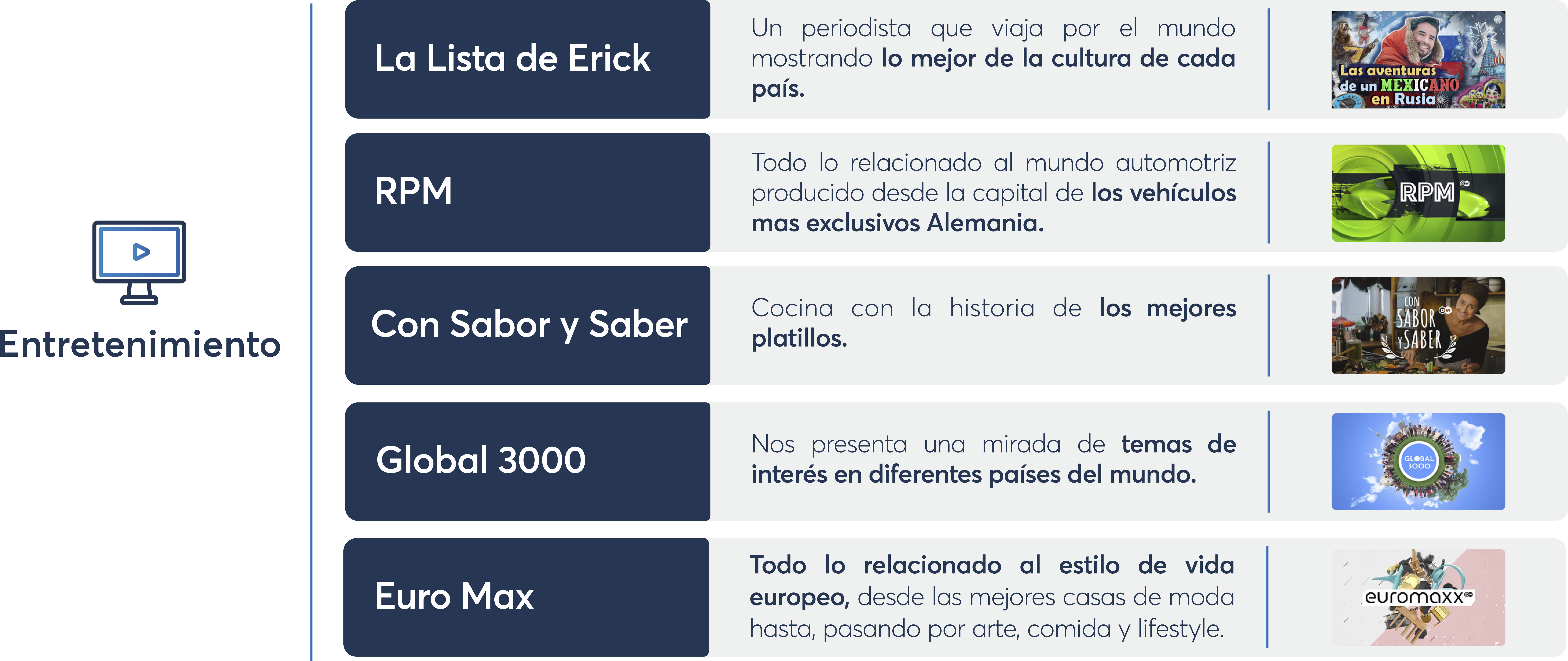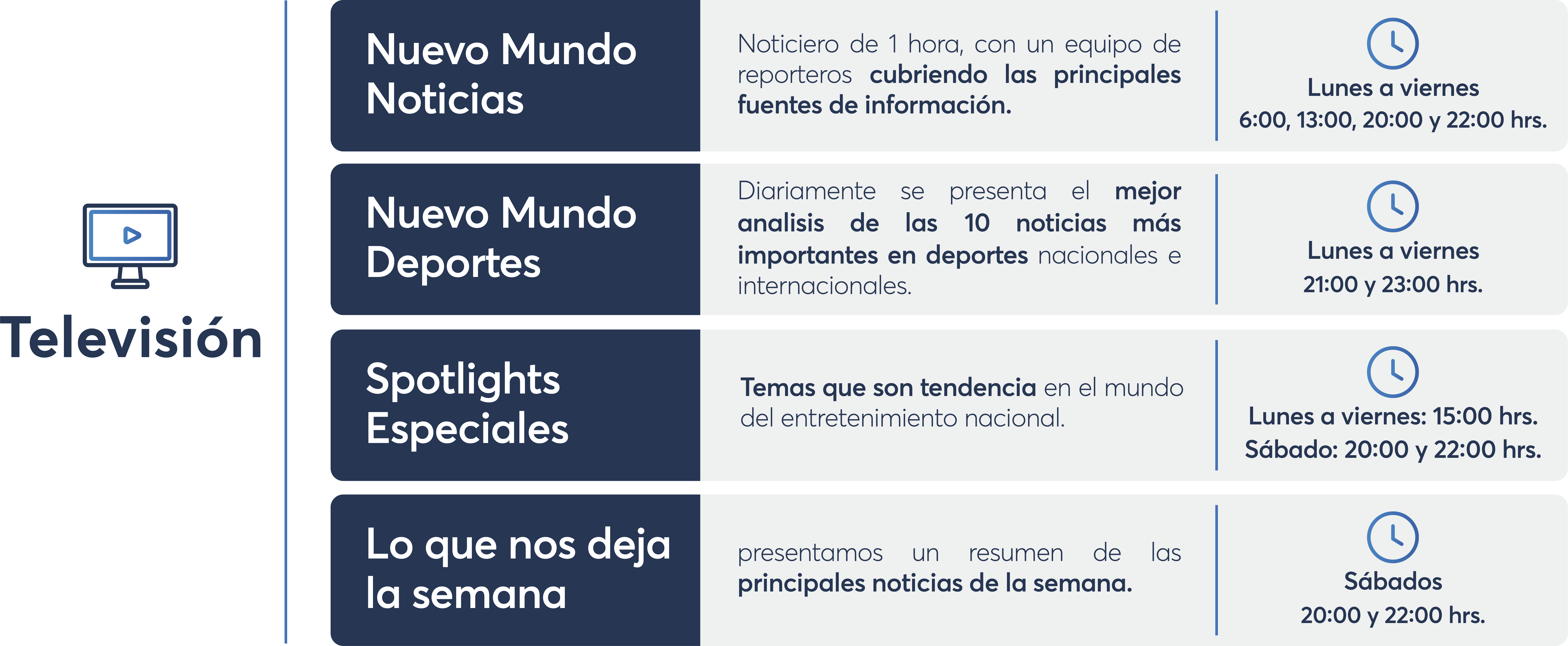 de noticieros, deportes, entretenimiento y programas de opinión.